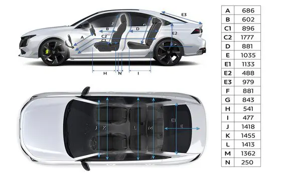 Jaunā 508 PSE salona izmēri